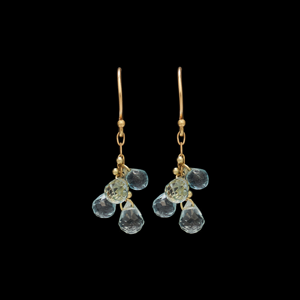Briolette Small Cluster Drop Gold Earrings