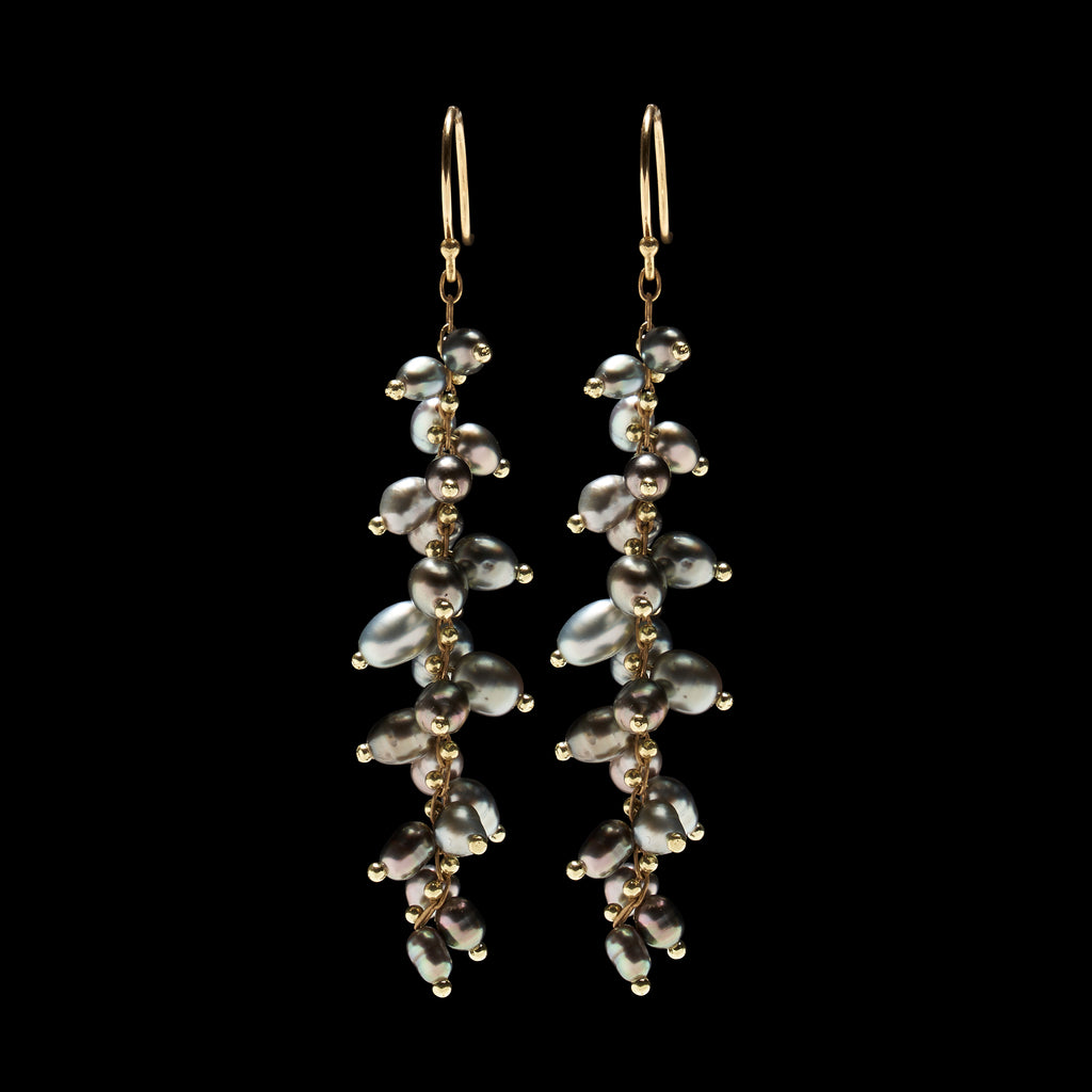 Extra Long Beaded Cluster Pearl Earring